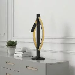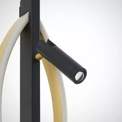 Designsuuntautunut, himmennettävä Matwei LED-pöytävalaisin, jossa on messinginväriset, valaisevat kaaret ja erillinen, kääntyvä spotti