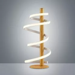 Milora LED-pöytävalaisin metallista tammipuun näköisenä, integroidulla kolmiportaisella himmennystekniikalla