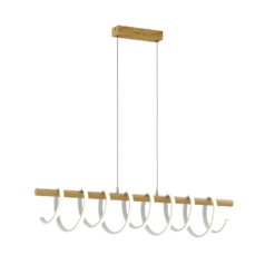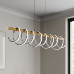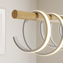 Milora on LED-riippuvalaisin, jonka kattokiinnike ja runko ovat metallia, mutta näyttävät puulta, koska metalli on suunniteltu pintaviimeistelyllä vaalean tammen ulkonäöllä niin, että lamppu huokuu luonnollisuutta. Päinvastoin kuin hyvin suoralla ja yksinkertaisella tavalla suunnitellun lampun runko, valosarjasta tulee mielenkiintoinen katseenvangitsija, koska se on kapeasta alumiiniprofiilista valmistettu spiraali, jonka toisella puolella on silikonikotelo ja LED-valot asennettu sen taakse, joka kiertyy pitkän puutikun ympärille.