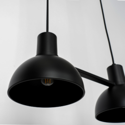 Kaksilamppuinen Mostrid-palkki-riippuvalaisin mattamustilla raudanvarjostimilla, tyylikäs muotoiluMostrid sopii hyvin moderniin ympäristöön, mutta ei voi myöskään peittää tiettyä vintage-nuottia, ja se on todella mukava lisä erityisesti skandinaaviseen sisustustyyliin. Palkkiin kiinnitetyt kaksi sävyä ovat pyöreitä ja mustia, ja ne näkyvät yksityiskohtia vähentävässä ulkoasussa. Ne säteilevät valoa niputettuna alaspäin, koska rauta on läpinäkymätöntä kuten mikä tahansa metalli, joten valo pääsee ulos vain siellä, missä on aukko – tässä tapauksessa alareunassa. Tämän ansiosta tämä eksklusiivisen muotoilun omaava riippuvalaisin on tarkoitettu käytettäväksi keittiön tai olohuoneen ruokapöydän yläpuolella. Tämä tarkoittaa kirkasta valoa pöydän pinnalla, mutta pehmeää ja viihtyisää valoa – juuri niin kuin haluat, kun istut pöydän ääressä illalla pitkän päivän jälkeen perheen kanssa ja haluat rentoutua ja nojata mukavasti taaksepäin nauttiaksesi ateriasta ja keskusteluista läsnäolijoiden kanssa.