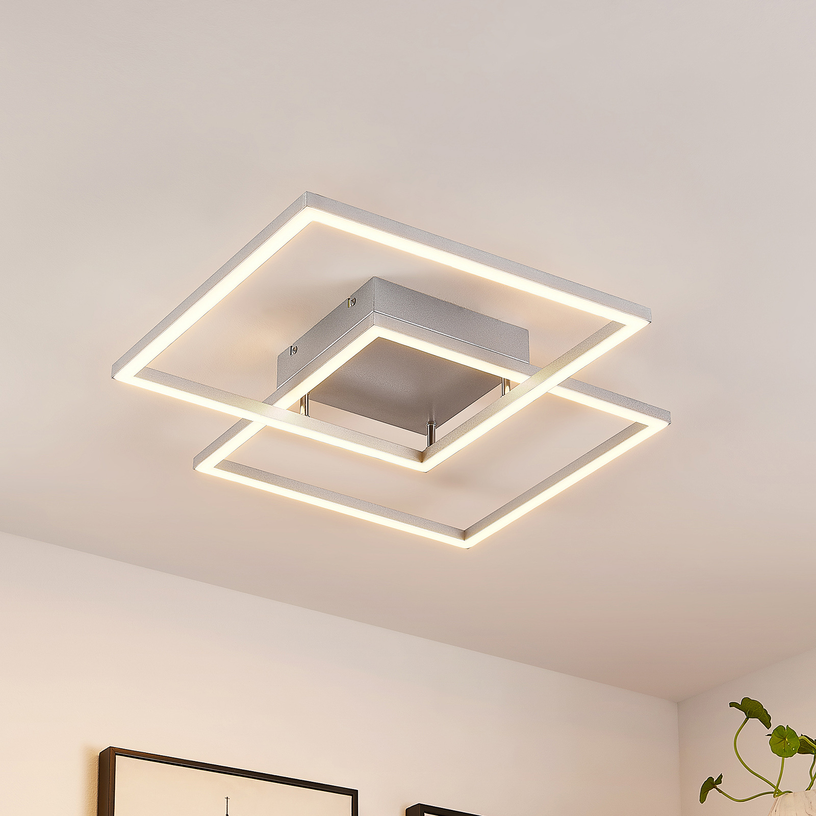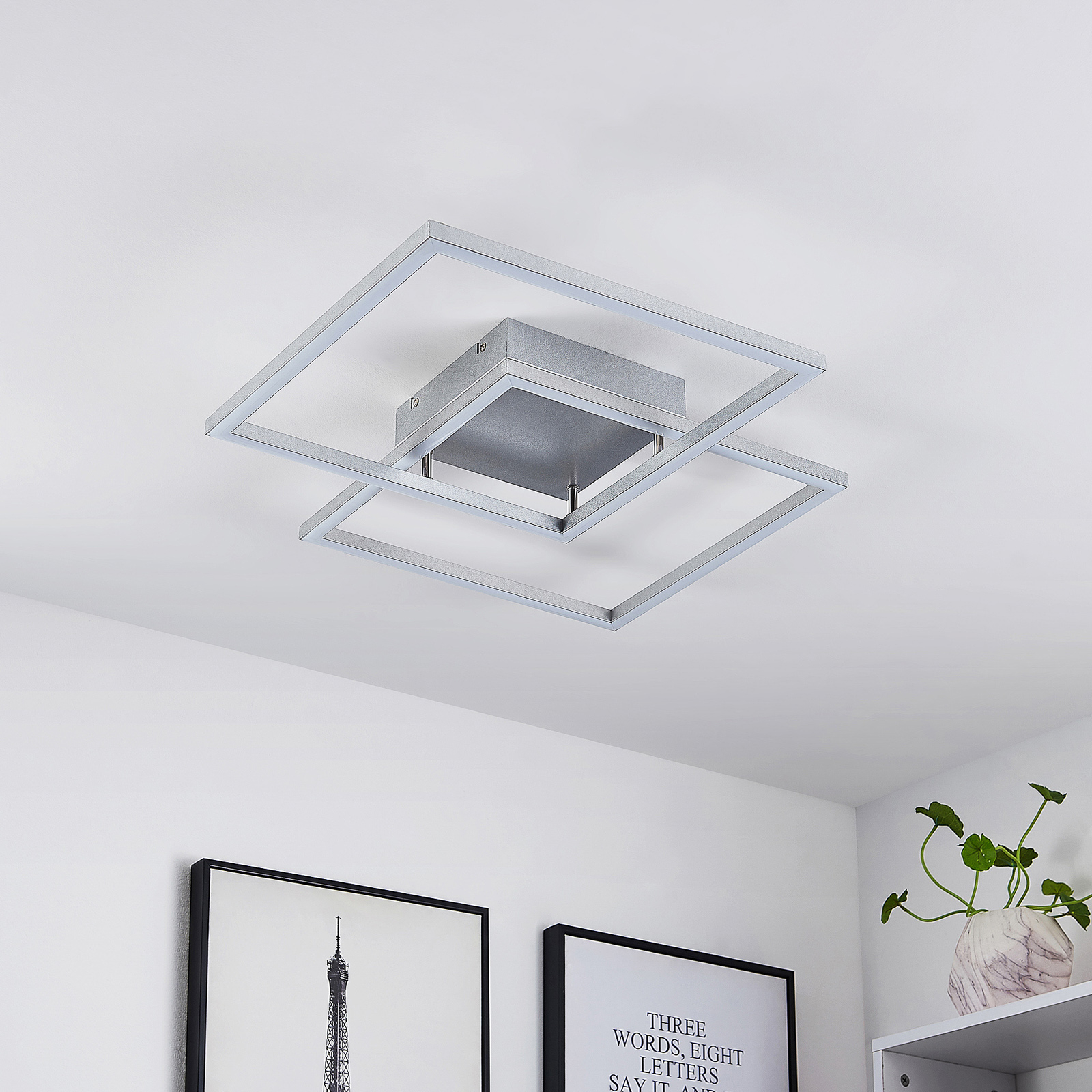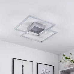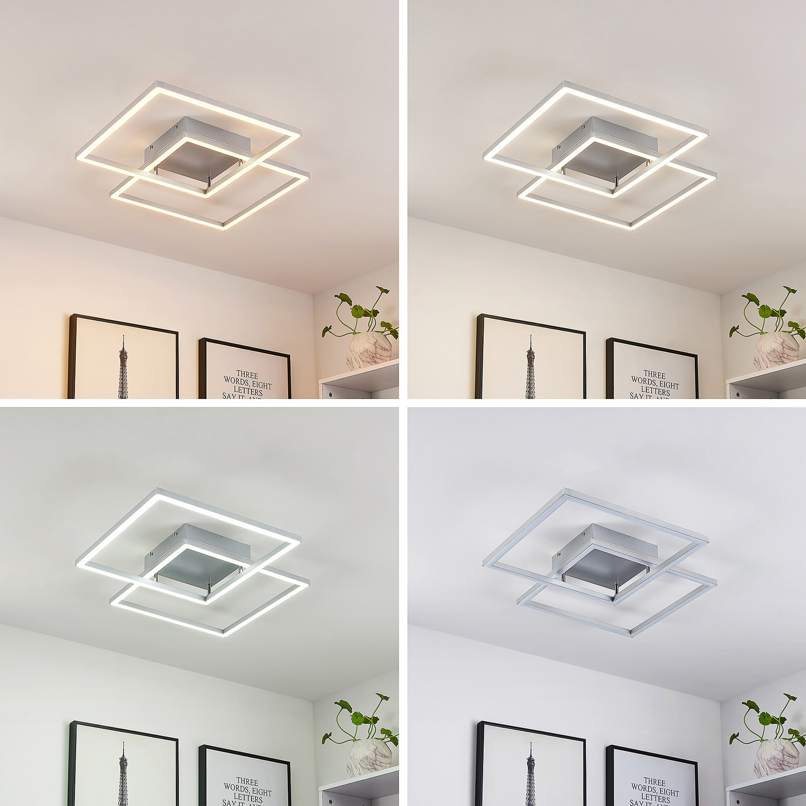 Muir- LED-kattovalaisin yhdistyvät muodikas muotoilu ja toiminnalliset ominaisuudet. Se koostuu kahdesta neliömäisestä raudasta ja alumiinista valmistetusta kehyksestä, jotka luovat houkuttelevan kuvion, jossa ne leikkaavat kulmissaan. Kaukosäätimen tai jokapäiväisen seinäkytkimen avulla lamppu voidaan säätää kolmeen eri valonväriin (2700 K, 4000 K ja 6500 K) ja tarjoaa siten aina täydellisen tunnelman. Lisäksi LED-kattovalaisin Muir voidaan himmentää jatkuvasti kirkkaudessaan (14% – 100%). Siinä on myös yötila, joka luo täydellisen valon pimeimpään aikaan. Muistitoiminto tarkoittaa, että aiemmin asetetut tilat säilyvät. Tyylikäs muotoilu voidaan helposti integroida moderneihin kalustustyyleihin kääpiöimättä muita huonekaluja.