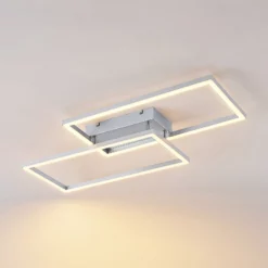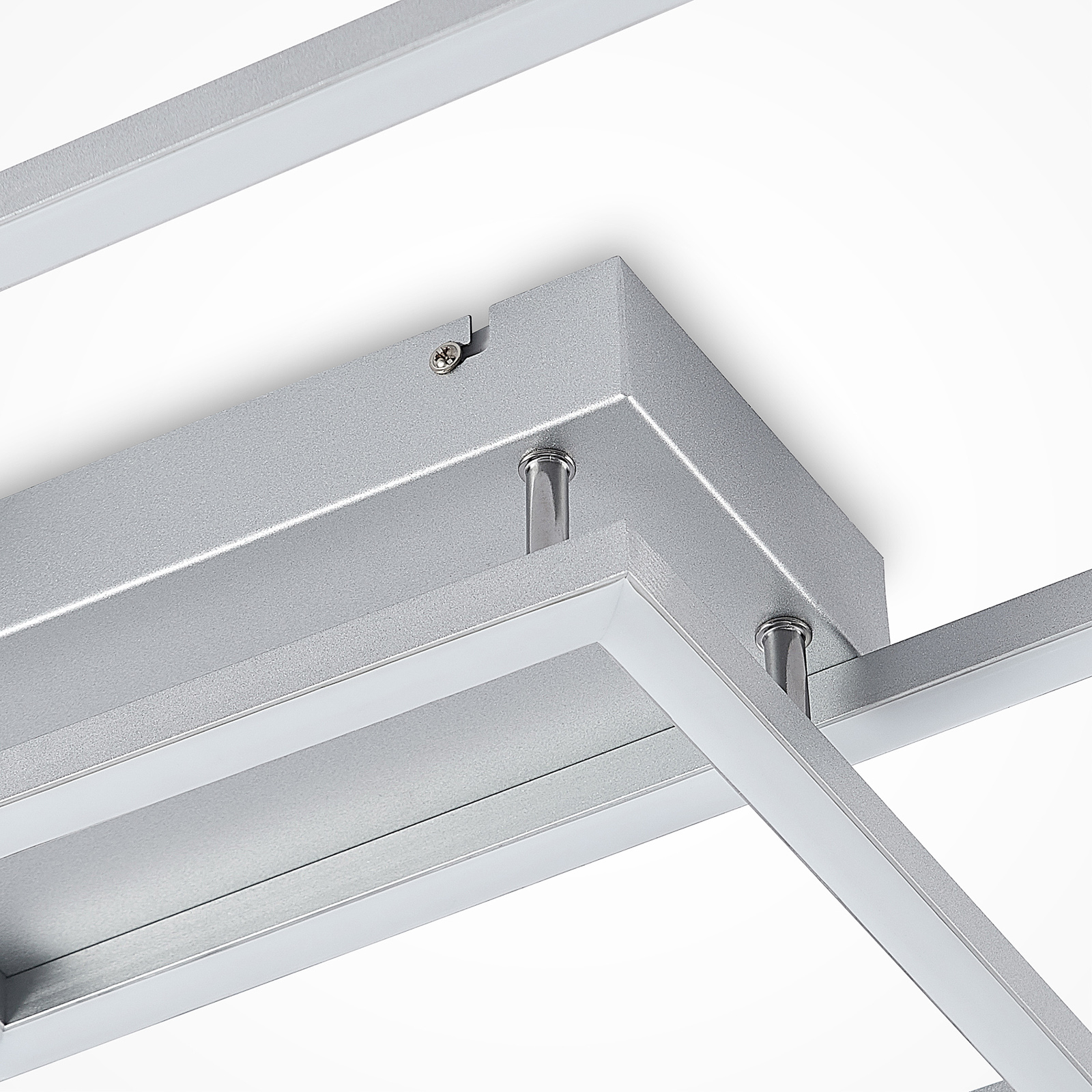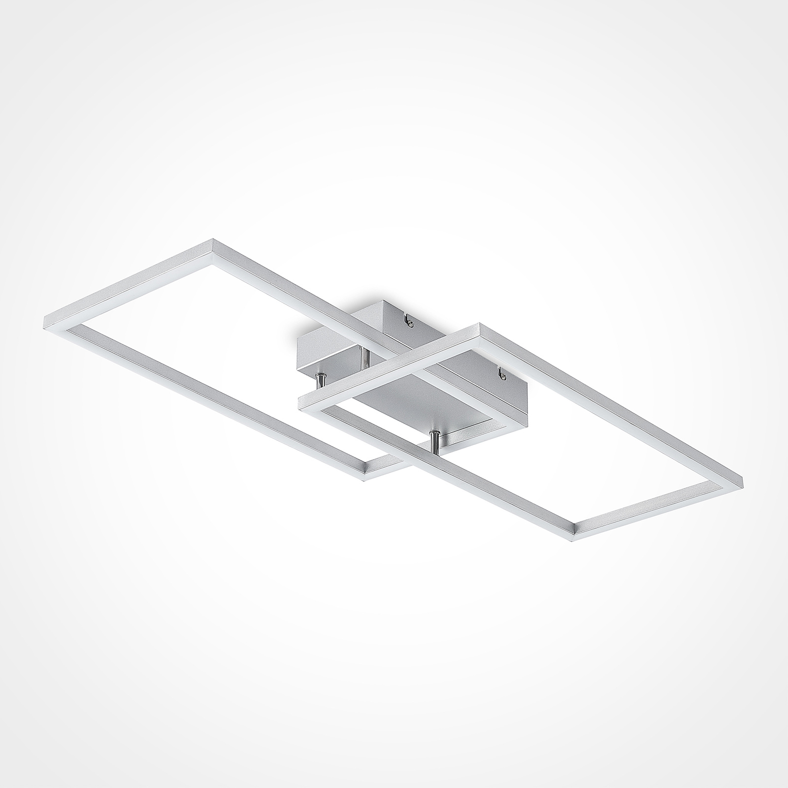 LED-kattovalaisin Muir on tyylikäs ja käytännöllinen samanaikaisesti. Se koostuu kahdesta suorakulmaisesta alumiinista ja raudasta valmistetusta kehyksestä, jotka pidetään hopeana. Nämä ylittävät kulmat ja muodostavat siten mielenkiintoisen kuvion. Lisäksi lamppu voidaan himmentää jokapäiväisellä seinäkytkimellä. 4-vaiheisen himmennystekniikan ja säännöllisen sammutustoiminnon avulla valo voidaan himmentää 100%, 60%, 30% ja 13%: iin sen normaalista kirkkaudesta ja kytkeä päälle ja pois päältä tavalliseen tapaan. Tämä tapahtuu painamalla seinäkytkintä useita kertoja. Muir- LED-kattovalaisin moderni muotoilu asettaa tyylikkäät korostukset huoneiston kattoihin ja voidaan helposti integroida sisustukseen.