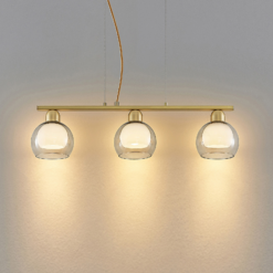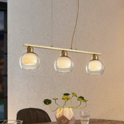 Mylah-ripustusvalaisin sopii erinomaisesti ruokasaliin tai olohuoneeseen. Pitkänomainen muotoilu sopii täydellisesti ruokapöydän valaisemiseen ja antaa tarvittavan kirkkauden aterian aikana. Se koostuu jousesta, joka on kiinnitetty vaakasuoraan ripustukseen ja jossa on kolme lampunvarjostinta. Nämä varjostimet on valmistettu valkoisesta ja savunharmaasta lasista, ja niihin voidaan asentaa vastaavat valonlähteet. Valon voimakkuuden ja värin voi mukauttaa henkilökohtaisten tarpeiden mukaan valaisimen valonlähteen mukaan. Mylah-riippuvalaisimen silmiinpistävä vintage-muotoilu korostaa sisustusta ja antaa jokaiselle huoneelle sen tietynlaisen lisän.
