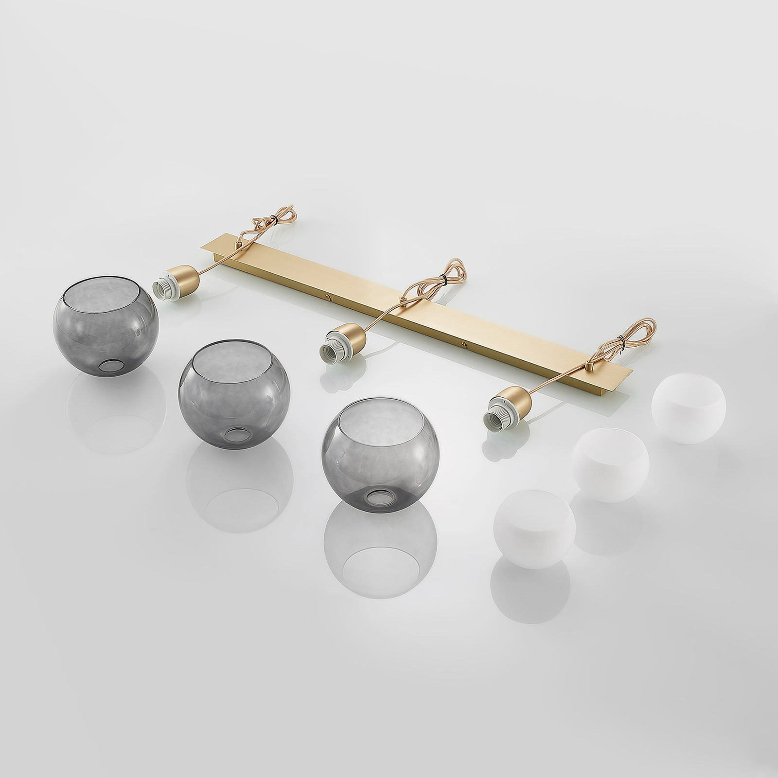 Jos etsit luotettavaa valaistusta ruokasaliin tai eteiseen ja olet myös vintage-designin ystävä, et tule pettymään Mylah-ripustusvalaisimeen. Se koostuu raudasta valmistetusta pitkänomaisesta kattovalaisimesta, johon mahtuu kolme lampunvarjostinta ja jonka pinta on messinginvärinen. Kolme sävyä koostuvat kukin kahdesta valkoisesta ja savunvärisestä lasisävystä, ja ne ympäröivät käytettävää valaisinta. Mylah-riippuvalaisin luo häikäisemättömän valaistuksen ja asettaa näyttäviä korostuksia tasaisiin kattoihin.