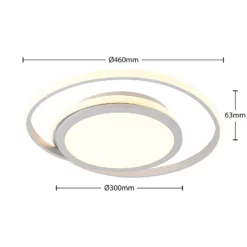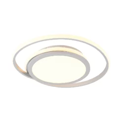 Noud- LED-kattovalaisin on houkutteleva ja tyylikäs ulkonäkö. Pyöreä elementti istuu sen kattokiinnike , jota ympäröi kaareva tuki ja luo siten mielenkiintoisen kuvion. Ympyrän sisään on kiinnitetty pysyvästi asennetut LEDit, jotka voidaan himmentää helposti seinäkytkimellä. Nelitasoisen himmennystekniikan ja säännöllisen virrankatkaisutoiminnon avulla valaisin voidaan himmentää 100%, 60%, 30% ja 13% sen kirkkaudesta ja kytkeä päälle ja pois päältä tavalliseen tapaan. Tämä tapahtuu painamalla seinäkytkintä useita kertoja. Noud- LED-kattovalaisin sopii erityisen hyvin asennettavaksi olohuoneisiin tai makuuhuoneisiin, mutta se näyttää hyvältä myös muissa huoneissa. Moderni ulkopinta voidaan integroida vaivattomasti moniin erilaisiin sisustustyyleihin olematta liian silmiinpistävää, ja tekee siten vaikutuksen miellyttävällä huomaavaisuudellaan.