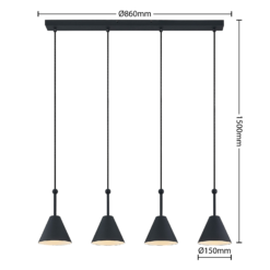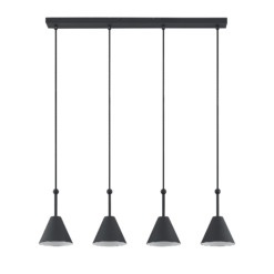 Phina-riippuvalaisin on ihanteellinen olohuoneen tai ruokasalin valaistukseen. Se on valmistettu raudasta ja on musta, kun taas sen varjostimet ovat valkoisia. Sen pitkänomainen muoto koostuu pitkänomaisesta kattokiinnike, johon on kiinnitetty neljä suspensiota, joista jokaisessa on varjostin . Jos varustat nämä E27-lampuilla, seinät luovat häikäisemättömän valaistuksen ja harmonisen tunnelman. Muodikkaan muotoilunsa ansiosta Phina-riippuvalaisin voidaan helposti integroida moniin erilaisiin sisustustyyleihin ja asettaa tyylikkäät aksentit sisustukseen.