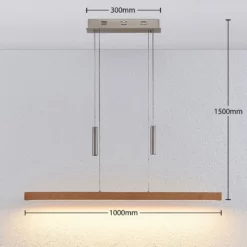 Tässä palkinmuotoisessa riippuvalaisimessa on erittäin modernin näköinen, pyökinvärisestä puusta valmistettu varjostin, ja sen korkeutta voidaan säätää kätevästi 120 cm:stä 210 cm:iin integroidun naruvetomekanismin avulla. Ledien valo säteilee alaspäin, mikä yhdessä pitkänomaisen muodon ja kaapelimekanismin kanssa osoittaa, että Pia soveltuu hyvin pöytävalaisimeksi. Siksi se voidaan erinomaisesti integroida nykyaikaisiin ruokasaleihin, ja kaikesta nykyaikaisuudesta huolimatta se tarjoaa myös luonnollista tunnelmaa, koska pitkänomainen varjostin on valmistettu aidosta puusta. Ulkoisen himmentimen avulla voit myös säätää valaisevan LED-palkki-riippuvalaisimen kirkkautta.
