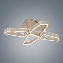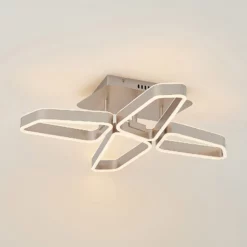 Moderni LED-kattovalaisin Quinn tekee vaikutuksen jännittävällä muotoilullaan. Nikkeliväriset metallikehykset on varustettu LED-valoilla ylä- ja alapuolella, joten lämmin valkoinen valo valaisee huoneen miellyttävästi ja korostaa samalla kattoon tulevaa lamppua.