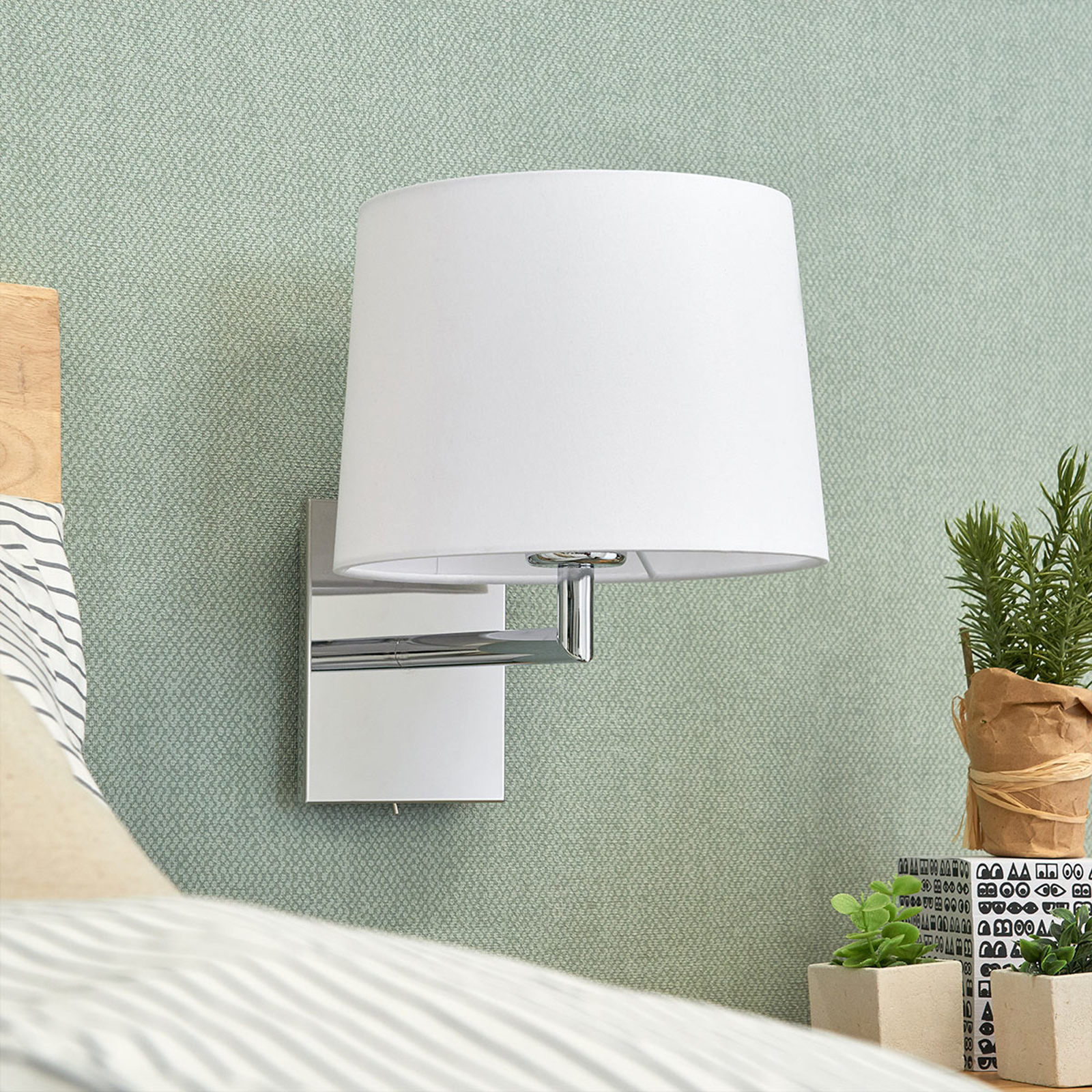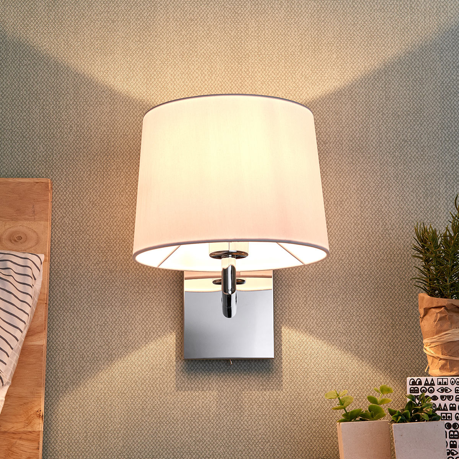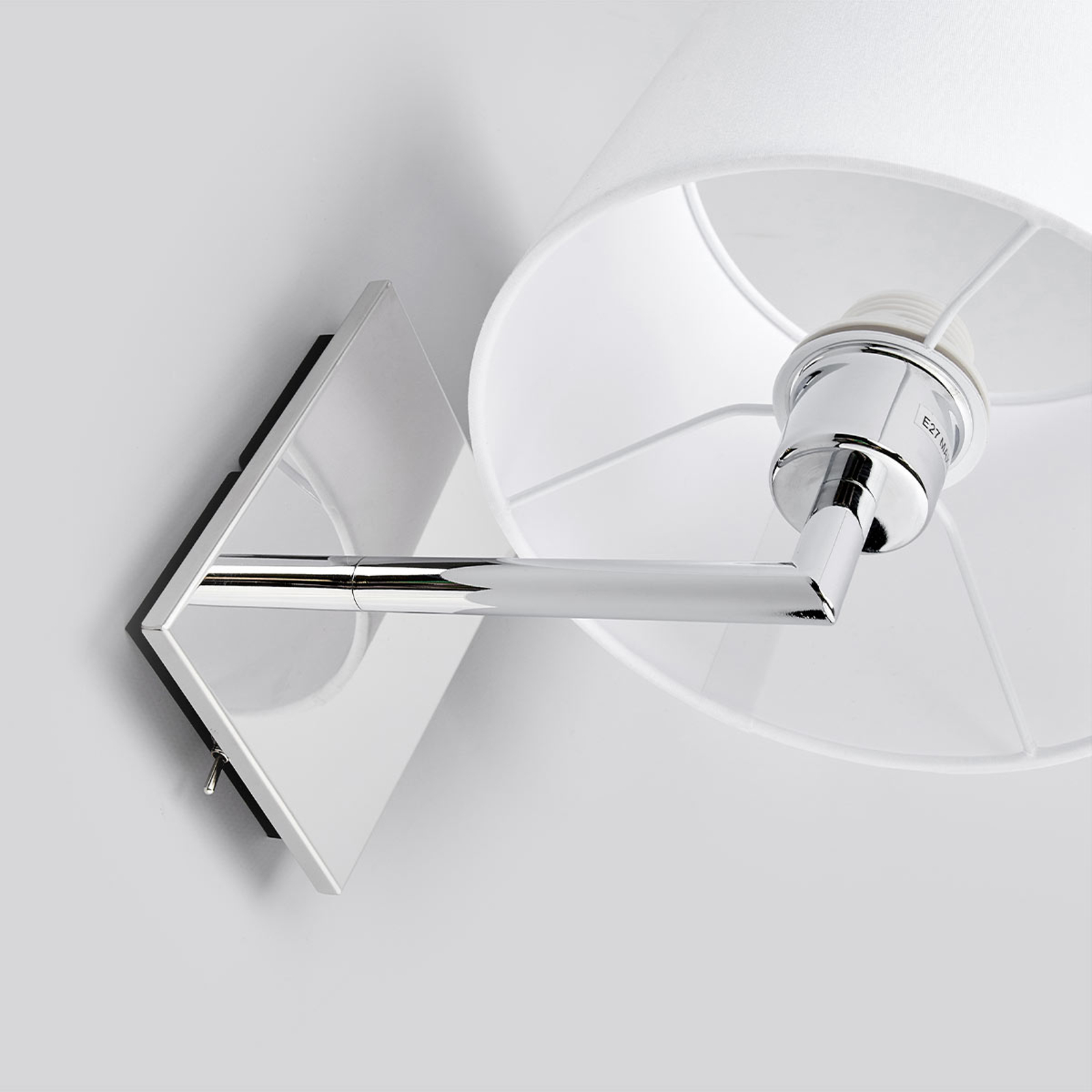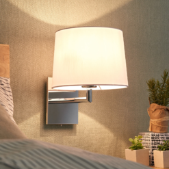 Randy sopii moniin olohuoneisiin ja huolehtii aina miellyttävästä valonsäteestä, sillä valkoinen kangas tekee valosta pehmeän ja miellyttävän. Kulmikas runko on peilimäisesti kromattu ja siinä on integroitu kytkin mukavaa paikan päällä tapahtuvaa päälle ja pois kytkentää varten, siten että seinävalaisin voidaan asentaa hyvin vuoteen tai sohvan viereen. Myös hotelli- ja ravintola-alalla se on aina kaunis lisä, joka antaa tyylikkään vaikutuksen.