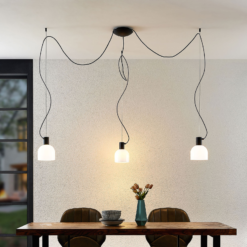 Serina on houkutteleva valaisin ruokailu- ja olohuoneelle, jonka kolme sävyä voidaan järjestää eri tavalla. Rungon runko-osat on maalattu mustiksi, kun taas pyöreän muotoiset lampunvarjostimet ovat valkoista opaalilasia. Siksi ne pystyvät diffundoimaan valoa erityisen kauniisti ja lempeästi ympäristöön, jolloin se pääsee vain suoraan alaspäin, mikä hyödyttää pöydän pinnan kirkasta valaistusta. Serina- riippuvalaisin tarjoaa kaikilla ominaisuuksillaan riippuvalo ja tekee ruokailu- tai sohvapöydästä erityisen kodikkaan paikan.