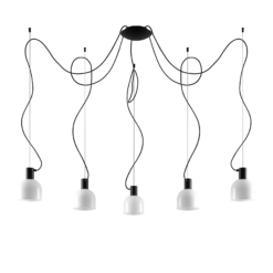 Serinalla on viisi pyöreää sävyä, jotka kaikki on valmistettu valkoisesta opaalilasista ja antavat siksi pehmeästi jakautuneen valon, joka tunkeutuu mukavasti ja tasaisesti huoneeseen. Sateenvarjot ovat auki vain alapuolella, jotta pöydän pinnan hyvä valaistus voidaan taata ruokapöydässä tai oleskelutilassa. Sateenvarjot voidaan järjestää vapaasti, mikä tarkoittaa, että yksilöllisempi ulkonäkö voidaan luoda. Viiden lampun versiolla voit luoda huoneeseen hyvän peruskirkkauden, vaikka tämä riippuu tietysti myös valonlähteen valinnasta, joka voidaan valita haluamallasi tavalla. Erityisesti hyvän hyötysuhteen ja matalan virrankulutuksen LED-lamput ovat ensiluokkaisia suosituksia.