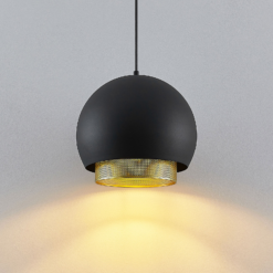 Sivanel on moderni riippuvalaisin, joka pistää heti silmään tummalla ulkonäöllään. Tässä yksiliekkisessä valaisimessa on kaksinkertainen lampunvarjostin. Ulompi varjostin on pallon muotoinen, ja siinä on musta pintakäsittely. Sisäpuolinen varjostin on sylinterin muotoinen, ja se on monin paikoin pistemäinen. Sen kultainen väri tuo kutsuvan korostuksen huoneeseen ja varmistaa, että valolla on lämmin vaikutus. Tämä valaisin näyttää kauniilta niin oman ruokapöydän kuin kaupallisen tiskin yläpuolella.