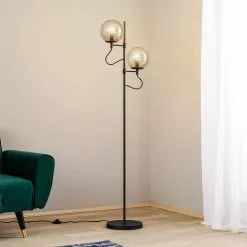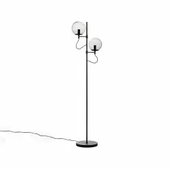 Sotiana on jalo valaisin, jota voidaan pitää klassisen valaisinmuotoilun uutena tulkintana ja joka tuo olohuoneeseen hieman vintage-tunnelmaa, jolloin kaksilamppuinen muotoilu palloineen voi toisinaan myös muistuttaa historiallisia kynttilöitä puutarhoista ja komeista puistoista. Kaksi lasipalloa on eri korkeuksilla ja niissä on savunharmaa sävy, joka näyttää jalolta ja sopii hyvin mustaan valaisimen runkoon ja vaikuttaa kauniisti valon kuvioon. Lineaarinen muotoilu, joka näkyy erityisesti kehyksessä, on yhdistetty ylellisyyteen, ja tekstiilikaapelilla varustettu lattiavalaisin antaa jaloa läsnäoloa ja koristeellista vintage-tunnelmaa olohuoneisiin