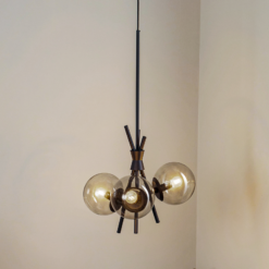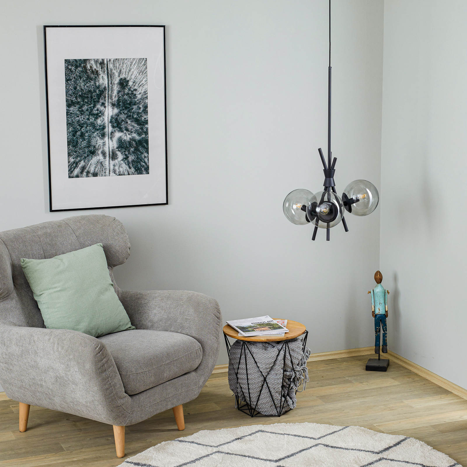 Jokaisesta kolmesta mustasta jousesta roikkuu savunharmaa lasipallo, joka on sävytetty mutta silti kirkas. Valonlähde on siis koko ajan selvästi näkyvissä ja siten osa ulkoasua, minkä vuoksi se on valittava asianmukaisesti. LED-hehkulamput, joissa on tuttu hehkulampun ulkonäkö ja alhainen kulutus, ovat juuri oikea valinta tähän tarkoitukseen.