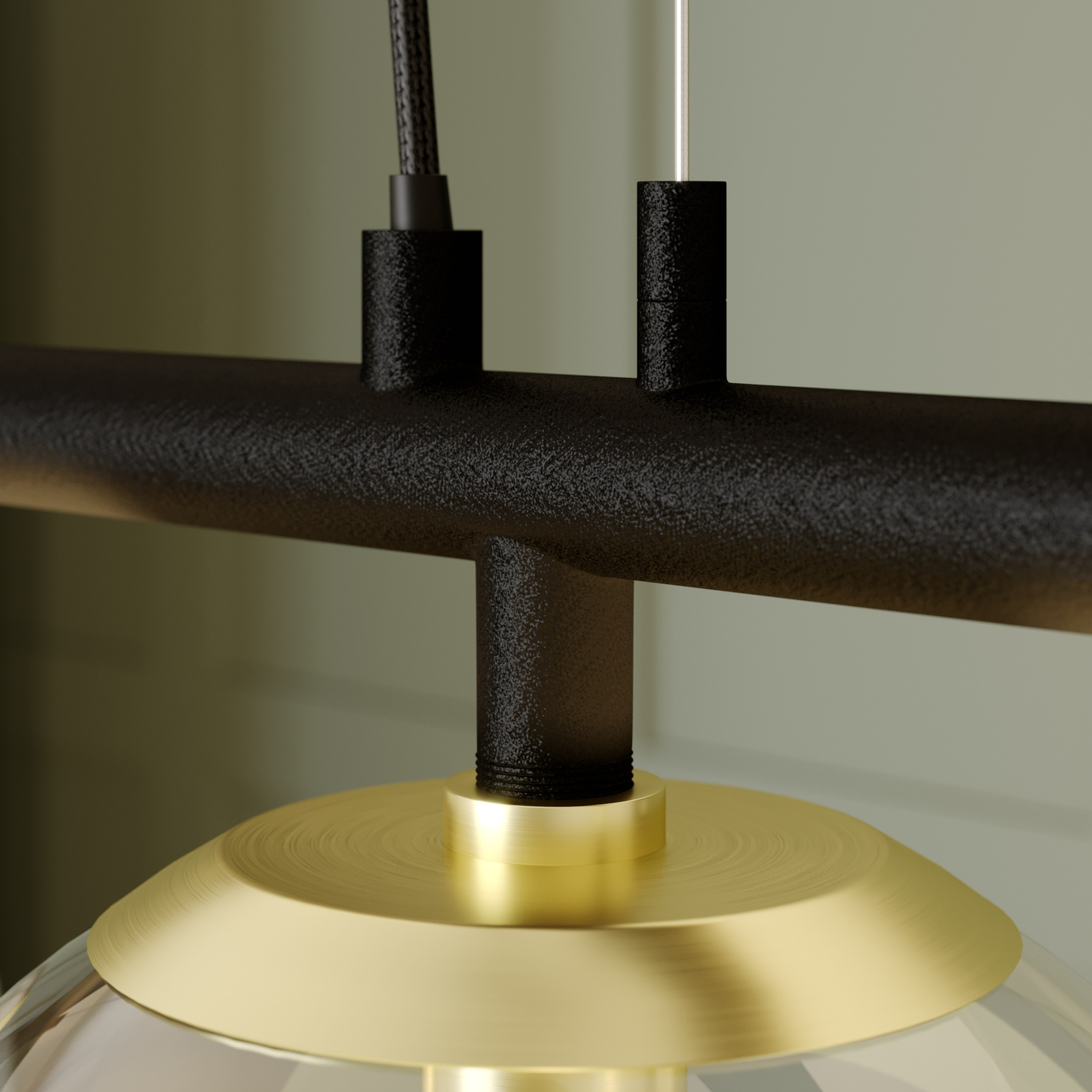 Modernissa Sotiana-valaisimessa on ripaus vintage-tyyliä. Valaisin on tietyllä tavalla uusi tulkinta erittäin klassisesta valaisinsarjasta. Runko, kattokiinnike ja palkit ovat mustaa metallia ja tyylikkäät lampunpidikkeet messinkiä. Yhdessä lasimateriaalin kanssa ne muodostavat kolmiosaisen, kauniin kokonaisuuden. Pitkänmuotoinen, nelilamppuinen tankoriippuvalaisin sopii ihanteellisesti ruokailuhuoneen pöydän yläpuolelle. Lasiosat on nopea ja helppo irrottaa asennusta ja lampun vaihtoa varten.