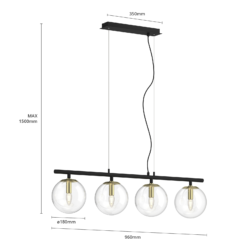 Sotiana on palkkimallinen design-riippuvalaisin, jossa on neljä kauniisti muotoiltua, kirkkaasti kiiltelevää lasipalloa. Näin varmistetaan, ettei lamppujen valotehosta mene mitään hukkaan. Lamput ovat esteettä näkyvillä, joten valaisimeen kannattaa valita tyyliin sopivat lamput. Tähän valaisimeen sopivat erinomaisesti pisaranmuotoiset LED-filamentti- ja rustiikkilamput.
