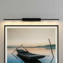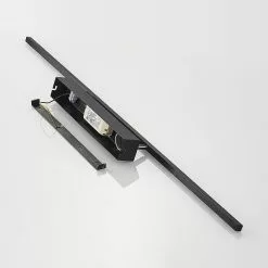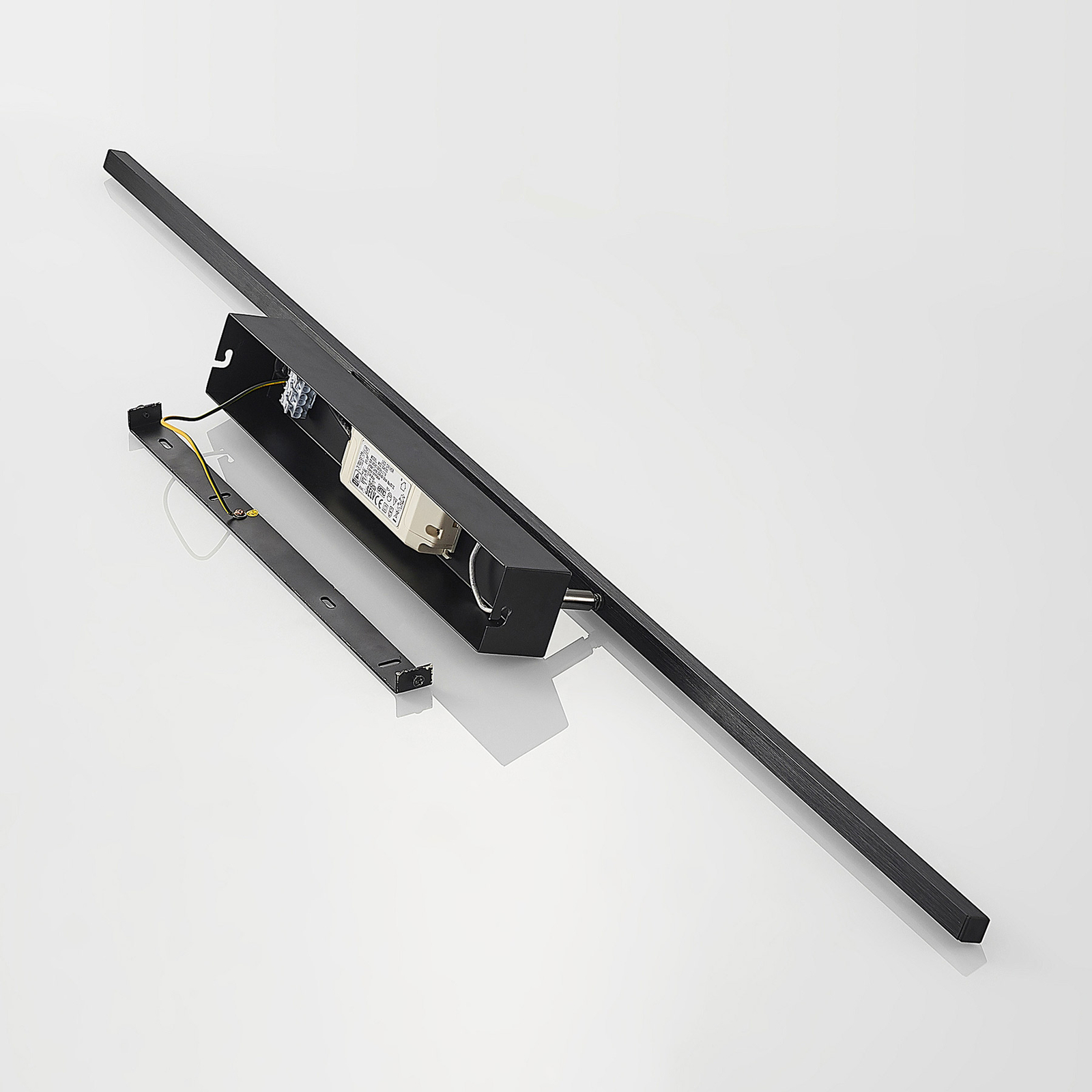 Matta-musta LED-seinävalaisin Stakato, kuusilamppuinenLED-seinävalaisin Stakato säteilee modernia lineaarisen muotoilunsa ja matta-mustan värinsä ansiosta. Valaistus on myös täysin nykyaikainen ja energiatehokas sisäänrakennettujen LED-valojen ansiosta. Ohut kuvavalaisin koostuu teräksestä valmistetusta katoksesta ja alumiinista valmistetusta valaisimen rungosta, jossa on akryylikannet ledien edessä. Se on varustettu lämpimän valkoisilla LED-valoilla ja innostaa toiminnallisuudellaan, sillä valaisimen kirkkautta voidaan säätää kolmella eri tasolla ilman lisäasennuksia. Seinäkytkimen avulla valaisin voidaan kytkeä päälle ja pois päältä tavalliseen tapaan. Integroidulla sammutustoiminnolla varustetun 3-vaiheisen himmennystekniikan ansiosta se voidaan myös himmentää kolmelle eri kirkkaustasolle (100 %, 50 % ja 20 %) painamalla kytkintä useita kertoja.