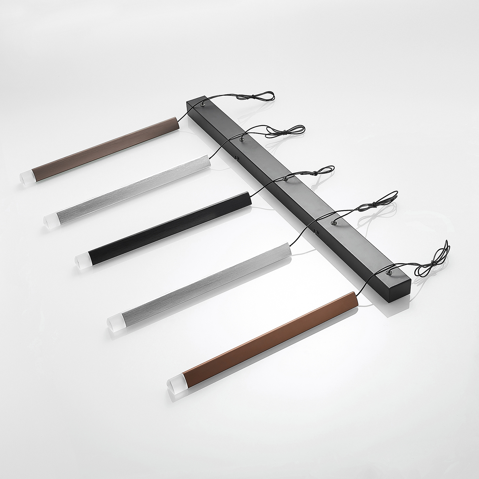 Stoika- LED-riippuvalaisin sopii käytettäväksi sekä pitkän ruokapöydän yläpuolella että tiskin yläpuolella, koska se voi valaista sen alapuolella olevaa aluetta hyvin viidellä valonlähteellään. Matta-muovikansien ansiosta lämmin valkoinen valo putoaa varovasti pöydän pinnalle ja jakautuu tasaisesti häikäisemättä.