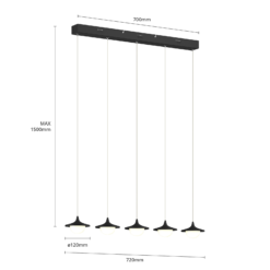 Lucande Tamsi -LED-riippuvalo, 5-lamp., Himmennys