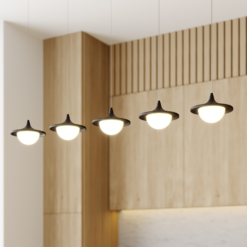 Tamsi-lED-riippuvalaisimessa on rustiikkiset, kevyesti pyöristetyt varjostimet. Valaisimen muotoilun viimeistelee kaunis musta metalliripustin. Kaunis valaisin sopii erittäin hyvin olohuoneeseen tai ruokailuhuoneeseen. Integroidut LED-valot ovat modernit ja energiaa säästävät. Valaisimen kirkkautta voidaan himmentää kolmiportaisesti seinäkatkaisijalla. Lämmin valkoinen valo valaisee kauniisti ja häikäisemättömästi satinoidun suojuksen läpi.