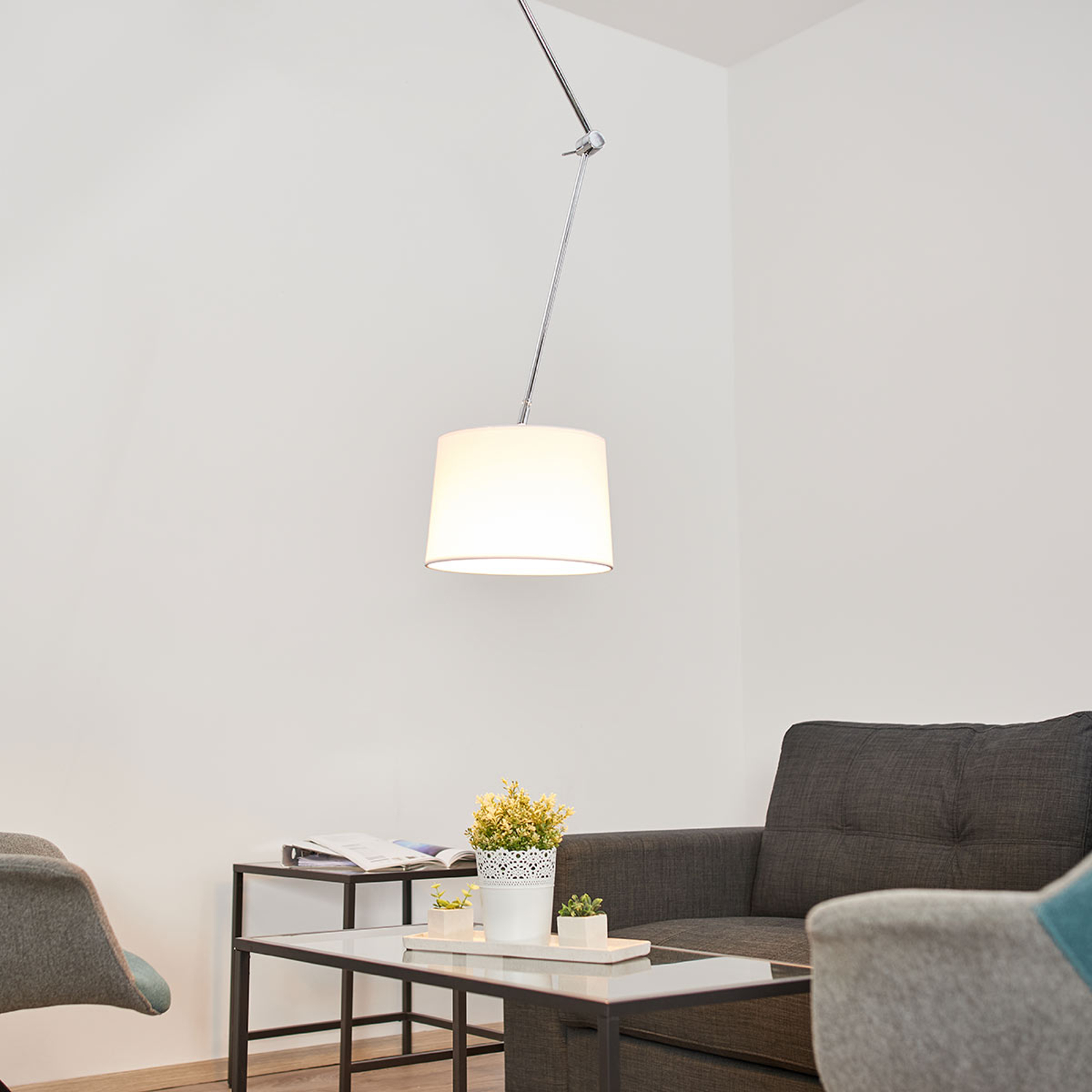 Jolla on erityislaatuinen riippuvalaisin, jonka korkeus ja kohdistus on optimaalisesti säädettävissä kahden ulokkeen ja nivelen kautta. Varjostin koostuu valkoisesta kankaasta, ja päällekytkettynä saadaan kaunis, kodikas valokuva, joka kutsuu viipymään. E27-kannan ansiosta voidaan käyttää moninaisia lamppuja, erityisen suositeltavia ovat LED-tekniikalla varustetut lamput, jotka ovat pitkäikäisiä ja energiaasäästäviä.