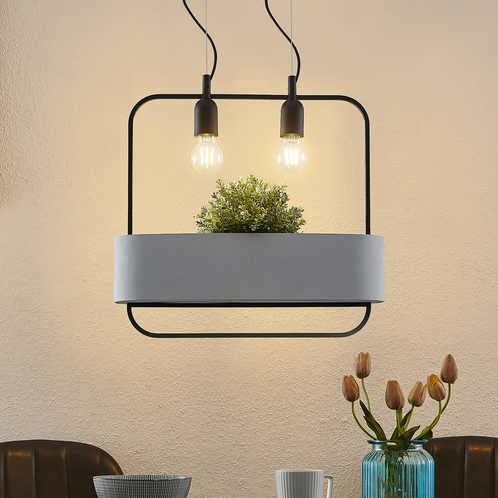 Lucande Teona -riippuvalo Betonia, 2-lamppuinen