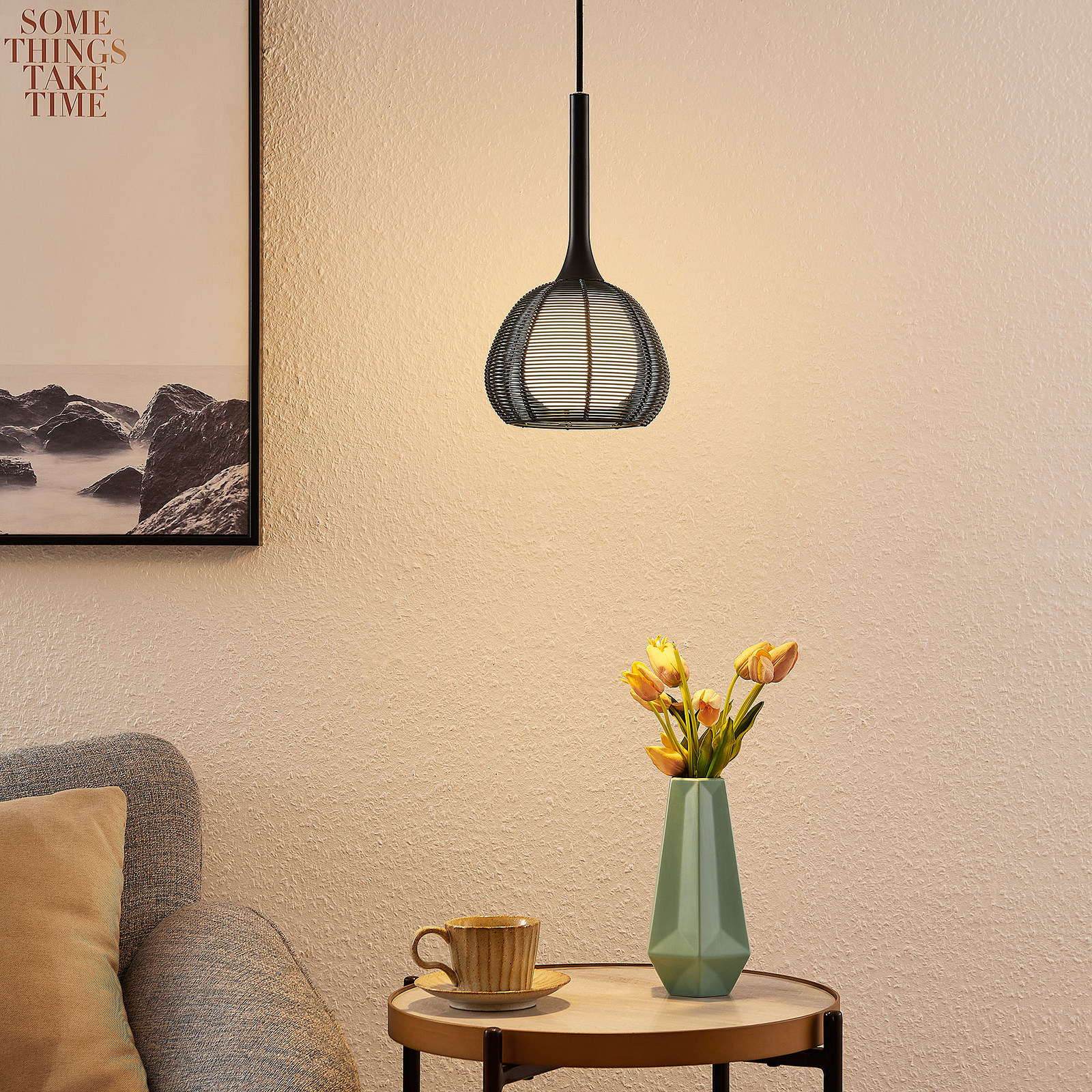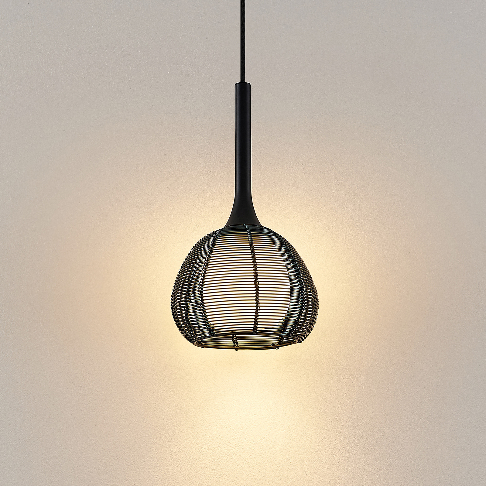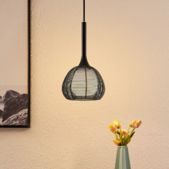 Tetira on kaareva varjostin, joka muistuttaa häkki ja on hieno aukkoja, joiden läpi valo pääsee tunkeutumaan. Sen takana on toinen lasista valmistettu varjostin ja sävytetty valkoinen. Tällä tavalla voidaan taata valon tasaisempi ja mukavampi jakautuminen. Häkkityylinen metallinen riippuvalaisin soveltuu melko kompaktin rakenteensa erilaisiin huoneisiin, esim. B. myös käytävälle. Metallipinta on musta ja ilmentää viileää eleganssia, joka otetaan hyvin vastaan moderneissa huoneissa. Tetira- riippuvalaisin käytetään valitsemallasi E14- lampulla , mieluiten näkemisen arvoisella LED-hehkulamputekniikalla, joka muistuttaa hehkulamppua, mutta käyttää vain murto-osaa tästä energiasta.