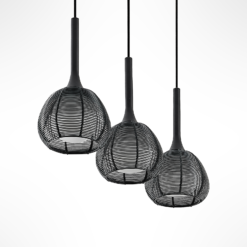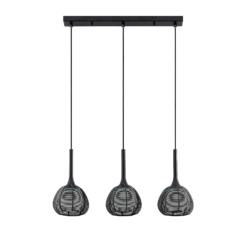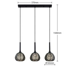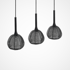 Tämä kolmiliekkinen heilurilamppu sopii hyvin moderneihin tiloihin ja tarjoaa kodikkaan valaistus. Yhteensä kolme sateenvarjoa roikkuu kattopalkista ja pidetään häkissä. Ulkopuolella musta metalliverkko korostaa ulkonäköä, sisäpuolella on toinen lasista valmistettu varjostin ja mahdollistaa valon jakamisen mukavasti. Vain alaspäin valaistus esteettömästi, mikä tekee riippuvalaisin pitkänomaisen muodonsa kanssa erittäin sopivan ruokailutilan pöytävalaistukseen.