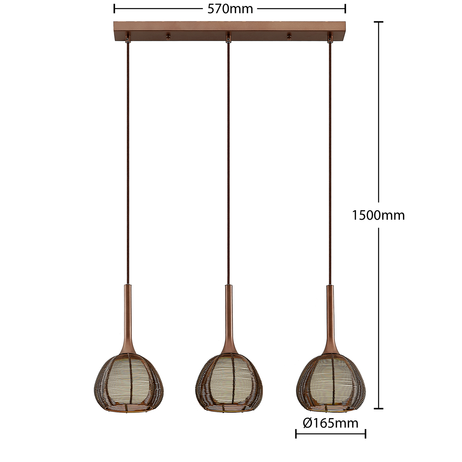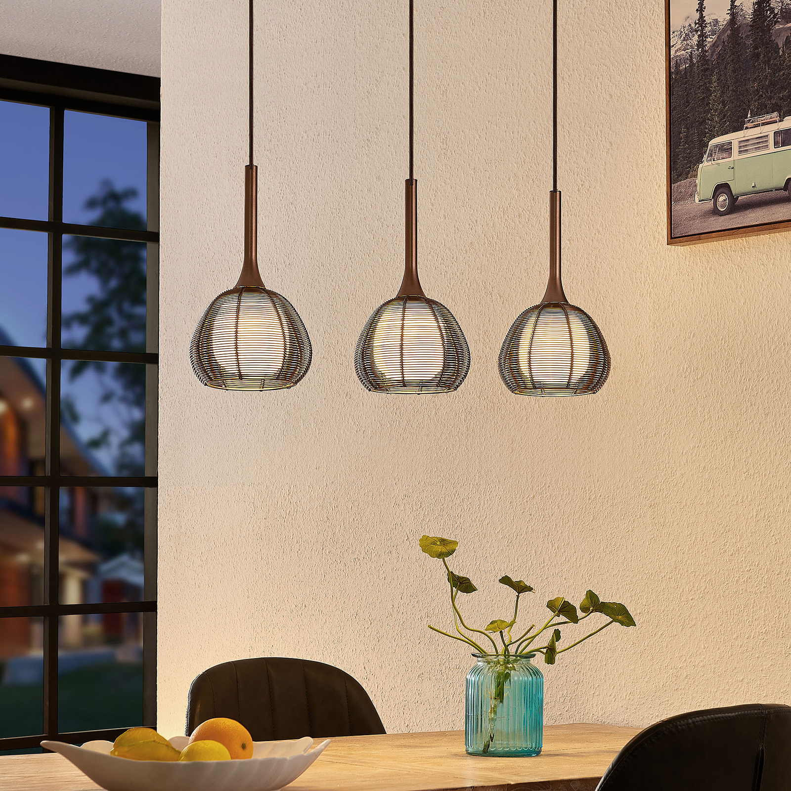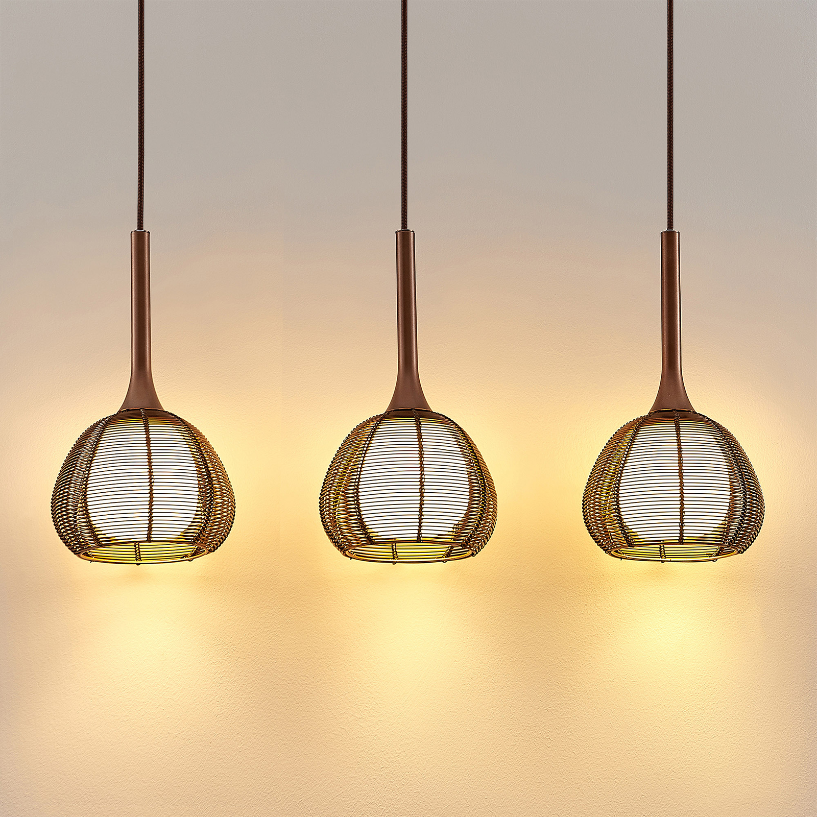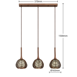 Lucande Tetira -riippuvalo, 3-lamppuinen, Ruskea
