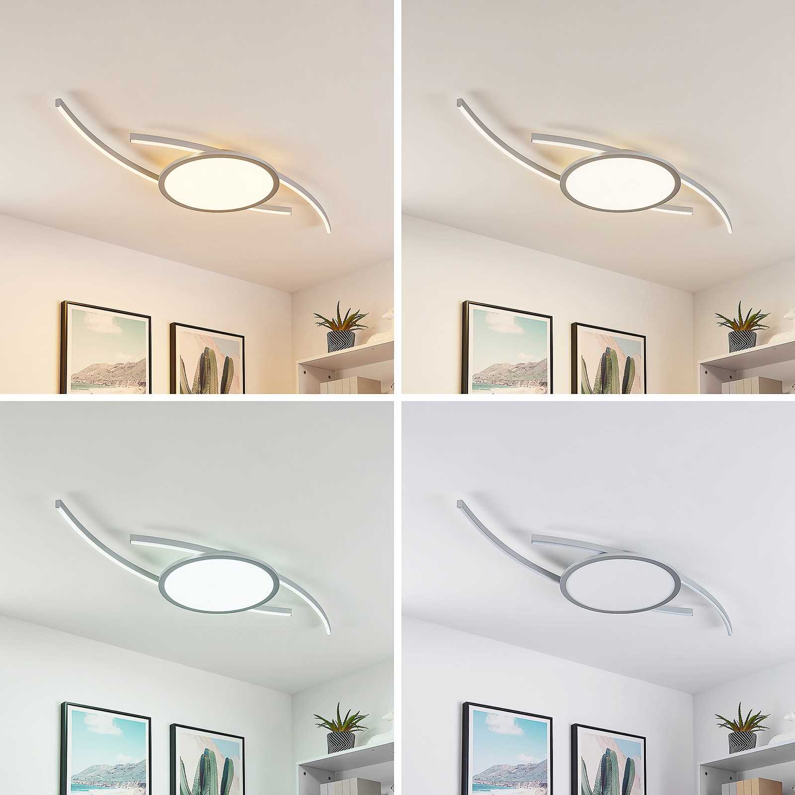 LED-kattovalaisin Tiaro on moderni muotoilu ja käytännölliset ominaisuudet, jotka tekevät siitä täydellisen kumppanin olohuoneen tai makuuhuoneen valaistuksessa. Se on valmistettu raudasta ja alumiinista ja on maalattu hopealla. Sen valaisimen runko koostuu pyöreästä elementistä, joka on kiinnitetty kahteen kaarevaan tukeen. Valon toiminnallisia toimintoja voidaan ohjata vaivattomasti kaukosäätimellä. Pysyvästi asennettujen LEDien kirkkautta (10% – 100%) ja valon väriä voidaan muuttaa jatkuvasti kolmessa vaiheessa (2700 K, 4000 K ja 6500 K). Tiaro- LED-kattovalaisin moderni muotoilu sopii täydellisesti nykyaikaiseen sisustustyyliin ja se voidaan turvallisesti asentaa sisätiloihin vaarantamatta muiden huonekalujen varjostamista.