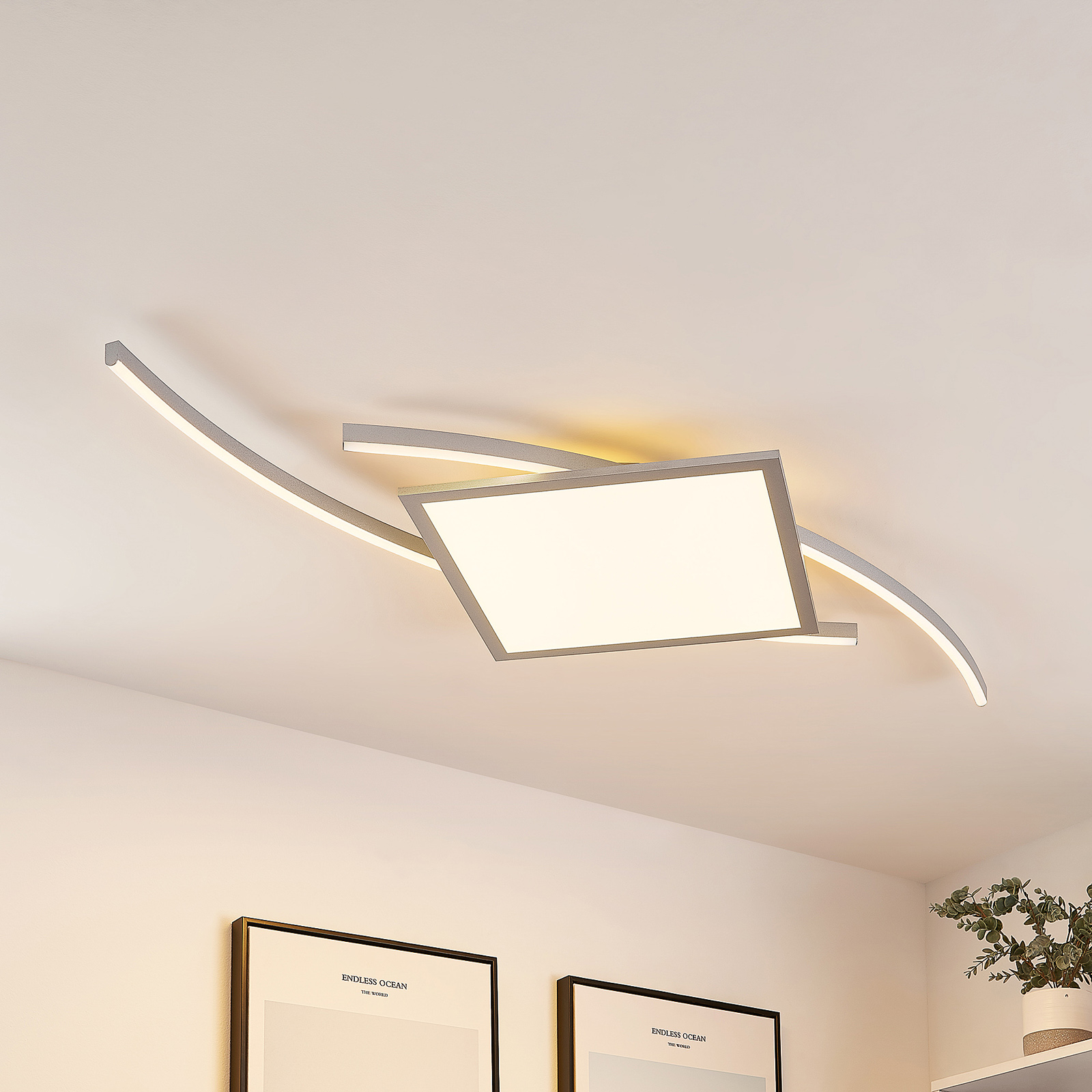 Tiaro- LED-kattovalaisin yhdistyvät tyylikäs muotoilu ja toiminnalliset ominaisuudet. Se koostuu raudasta ja alumiinista sekä kahdesta kaarevasta tukijalkasta, jotka kulkevat vierekkäin ja on yhdistetty neliöllä. Pysyvästi asennetut LED-elementit kulmaelementin sisällä ovat helposti hallittavissa niiden kirkkauden (10% – 100%) ja valon värin (2700 K, 4000 K ja 6500 K) suhteen kaukosäätimellä tai seinäkytkimellä. Tiaro LED-kattovalaisin tarjoaa siis aina oikean valon ja oikean tunnelman, joten se on täydellinen kumppani makuuhuoneeseen tai olohuoneeseen, mutta modernin ulkonäön ja käytännöllisten toimintojen ansiosta se soveltuu myös muiden huoneiden valaistukseen . Tyylikäs muotoilu voidaan helposti integroida muihin huonekaluihin ja sopii täydellisesti moderniin sisustustyyliin.