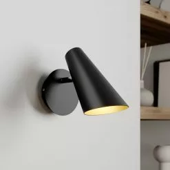 Wibke-seinävalaisin on pieni lisävalo lukunurkkaukseen, lempinojatuoliin tai myös sängyn moderniksi valaisimeksi. Siinä on kartiomainen varjostin, jonka sisäpuoli on lakattu kullanväriseksi ja jonka valo saa aikaan erittäin miellyttävän tunnelman. Säädettävä varjostin ja suoraan valaisimeen sijoitettu päälle/pois-kytkin tekevät Wibkestä käytännöllisen seinävalaisimen, jonka ulkomuoto tekee niin ikään vaikutuksen.
