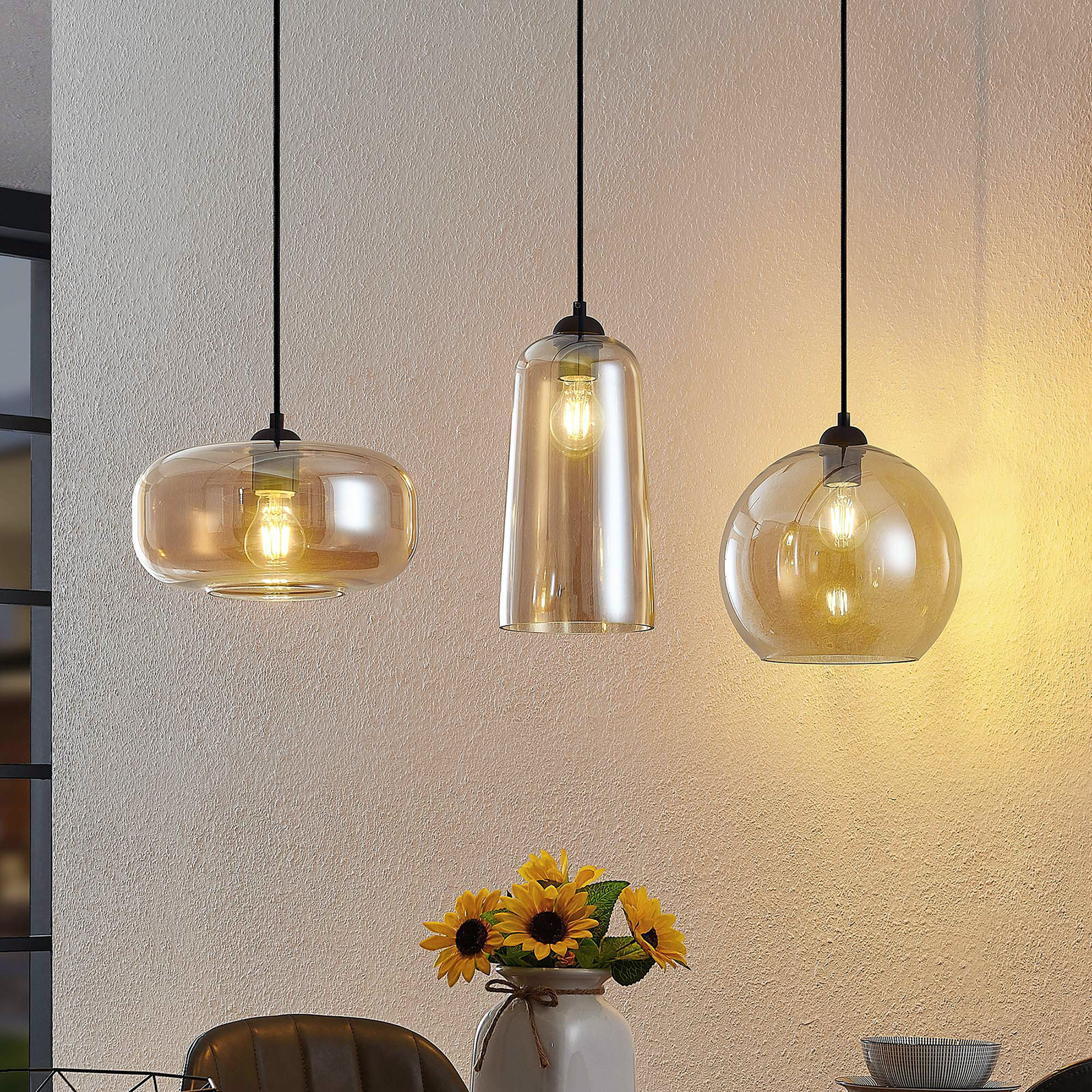 Lucande Wilja -riippuvalo, 3-lamppuinen, Amber