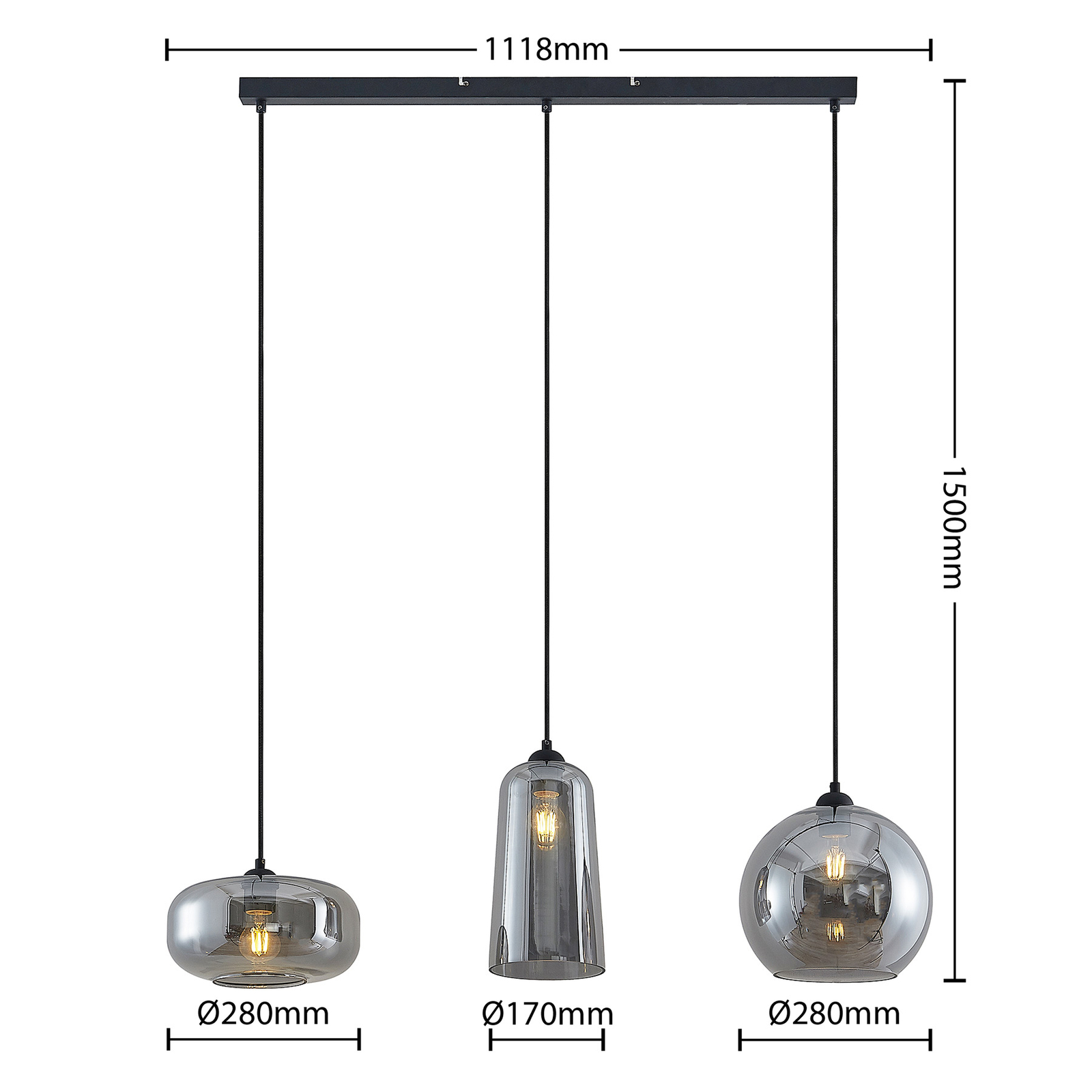 Lucande Wilja-riippuvalo, 3-lamppuinen Savunharmaa