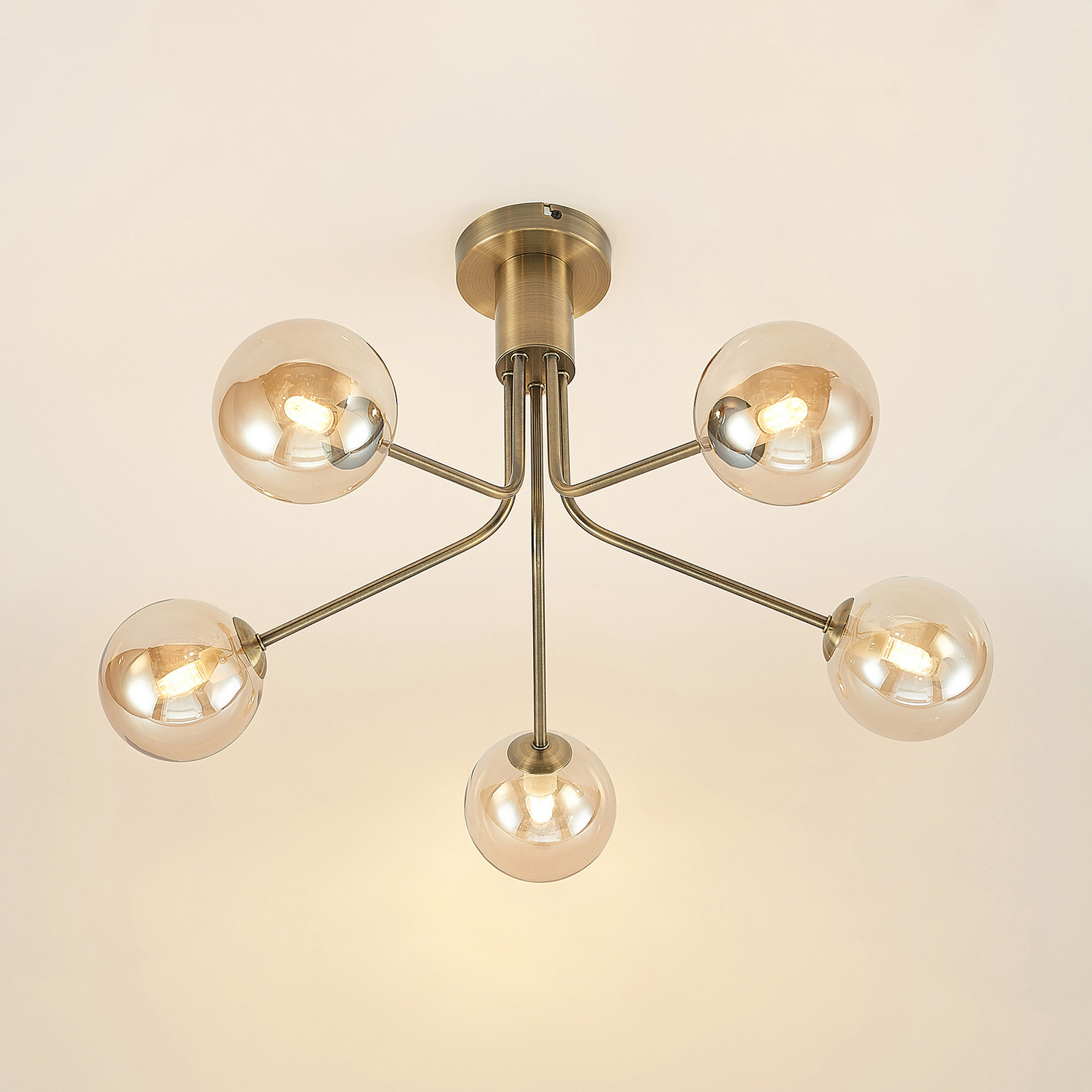Lucande Wynona -kattovalaisin, 5-lamp., Messinki