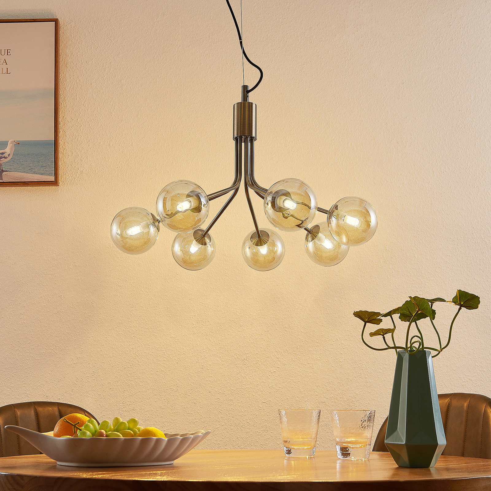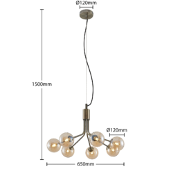 Aaltomainen pallojen lasista ja klassisen näköinen runko vanha messinki, riippuvalaisin valaisin epäilemättä myös tietty vuosikerta hahmo, joka voidaan yhdistää matching sisustus, mutta myös paljastuu tyylikäs vaikutus lukuisia moderneja ympäristöissä. G9-lamput käytettäväksi voidaan valita vapaasti, tehokkuuden parantamiseksi myös LED-tekniikalla.