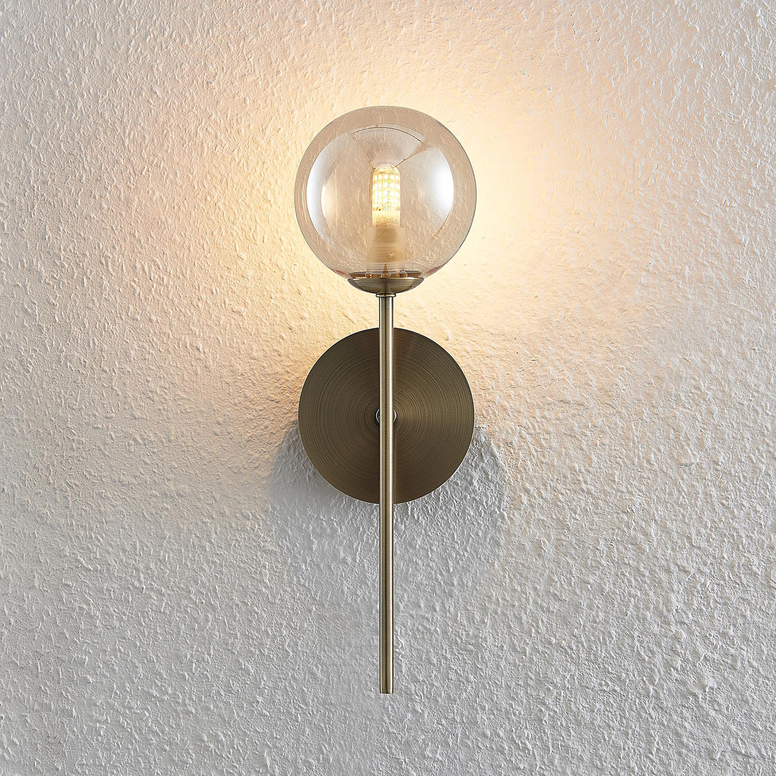 Tällä viehättävällä seinävalaisimella on kaunis ulkonäkö ja se on siksi erityisen lämmin. Kirkkaasta lasista valmistettu varjostin on sävytetty keltaiseksi ja siinä on huomattava uritettu rakenne, joka paitsi hienosäätää ulkonäköä myös antaa valolle kauniita heijastuksia. Teräsrunko on toisaalta pidetty kauniissa antiikkiesineessä messinkiä ja harmonisoituu upeasti lämpimän sävyisen lasin kanssa, mikä myös tekee valaistuksesta miellyttävämmän. Pystysuoran muodon ja kapean tangon takia syntyy yhdistelmiä klassisen seinäpolttimen kanssa. Valitsemasi G9-lamppu tarjoaa oikean valon, mieluiten tehokkaalla valodioditekniikalla, joka yhdistää taitavasti kirkkauden ja pienen virrankulutuksen.