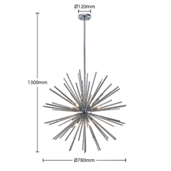 Yalina on mielenkiintoinen valaistusobjekti, joka päivittää jokaisen olohuoneen ja ruokasalin nopeasti. Tämän muotoilun ansiosta laaja varjostin on etualalla ja kattokiinnike ja jousitus ovat melko huomaamattomia. varjostin koostuu monista filigraanityyppisistä lasitangoista, jotka yhdessä antavat pallon muodon.