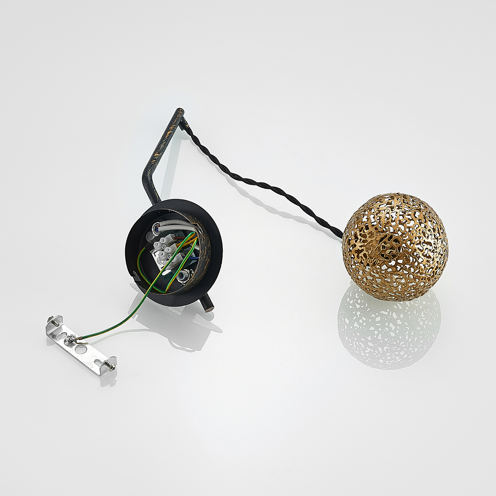 Zale-seinävalaisin koostuu pyöreästä kannattimesta, johon on kiinnitetty pitkä valaisinvarsi . Onko valaisinvarsi kultainen pallo, johon mahtuu valaisin. Valonlähde ei kuulu toimitukseen, ja se voidaan valita vapaasti. Koska varjostin on hienot syvennykset, valo tunkeutuu huoneeseen vain vaimealla tavalla ja sille annetaan kultainen hehku. Itämaistyylinen kuvio luo myös kiehtovia valotehosteita tasapainoisella valon ja varjon osuudella.