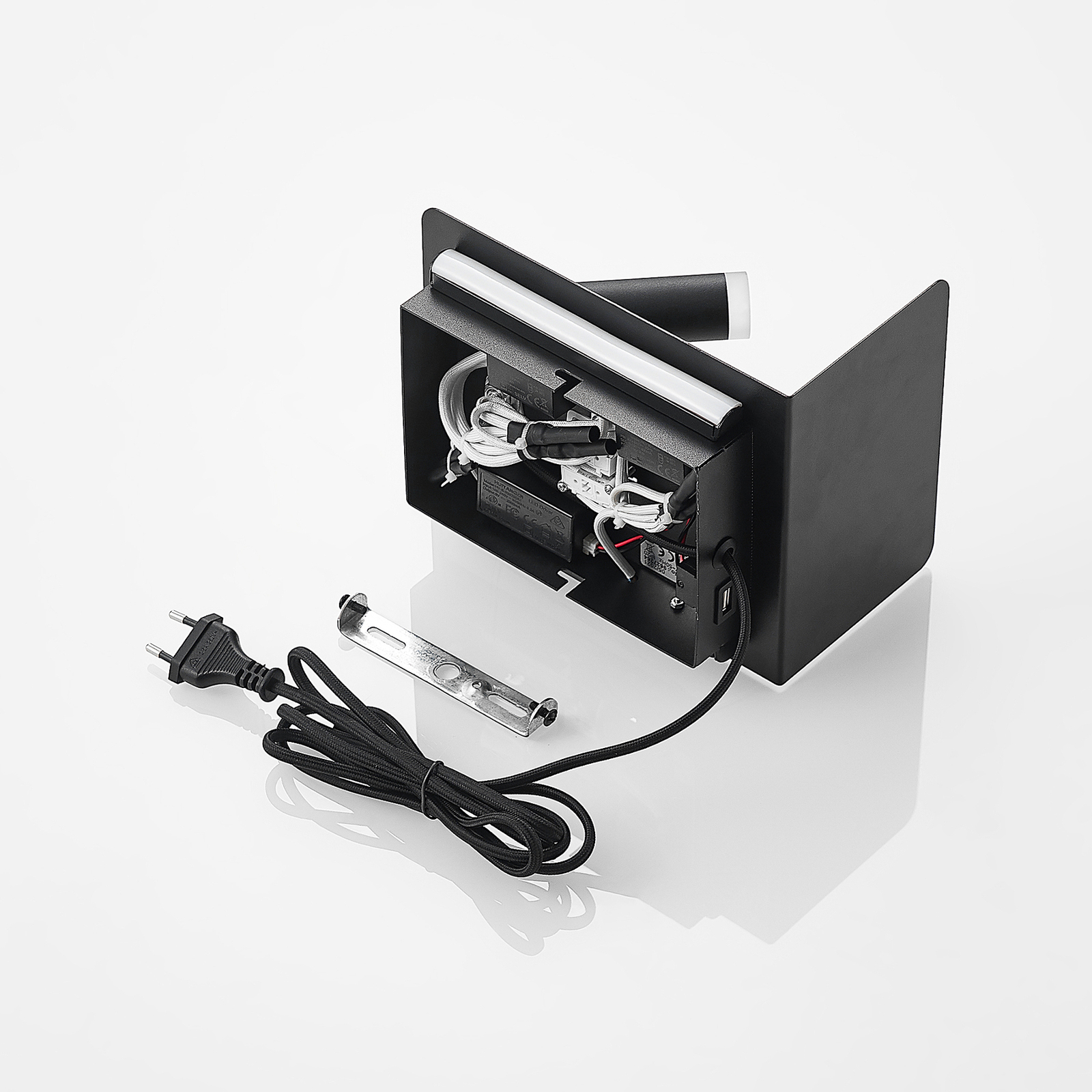 Tämän lampun erityispiirre on integroitu USB-liitäntä ja tallennusalue, jota voidaan käyttää esimerkiksi älypuhelimen lataamiseen. Tämä hyvin harkittu lamppu täyttää useita tarkoituksia samanaikaisesti ja näyttää erittäin hyvältä modernilla ulkonäöllä.