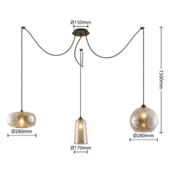 | Muut mitat | varjostin 1 Ø 28 cm; varjostin 2 Ø 17 cm; varjostin 3 Ø 28 cm; kattokiinnike Ø 15 cm |