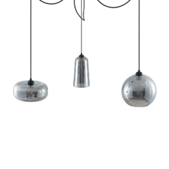 Zyli- riippuvalaisin sopii yhtä hyvin valaistukseen ja katseenvangitsijaksi nykyaikaisiin asuintiloihin, ja siinä on kolme erimuotoista lasisävyä. Ne on valmistettu savunharmaasta lasista ja kiinnitetty kattokiinnike mustalla tekstiilikaapelilla. Tällä tavoin Zyli varmistaa kirkkaan ja miellyttävän valaistuksen, jota voidaan käyttää itse huoneessa tai pöytien yläpuolella.